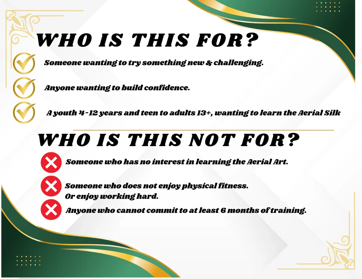 Our mission is to make fitness an accessible and exhilarating experience for everyone, regardless of age or background. We believe that fitness should be inclusive, fun, and within reach for all. Whether you're a seasoned aerialist or taking your first step into an aerial silk class, our team is here to support you on your fitness journey. 🎪🚀
